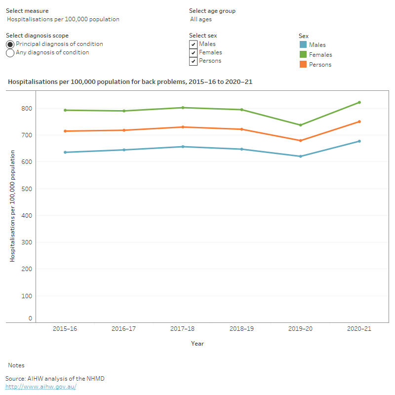 Note: back problems associated with another condition, such as osteoporosis are not included. For this reason, the total prevalence of back problems is likely to be underestimated.